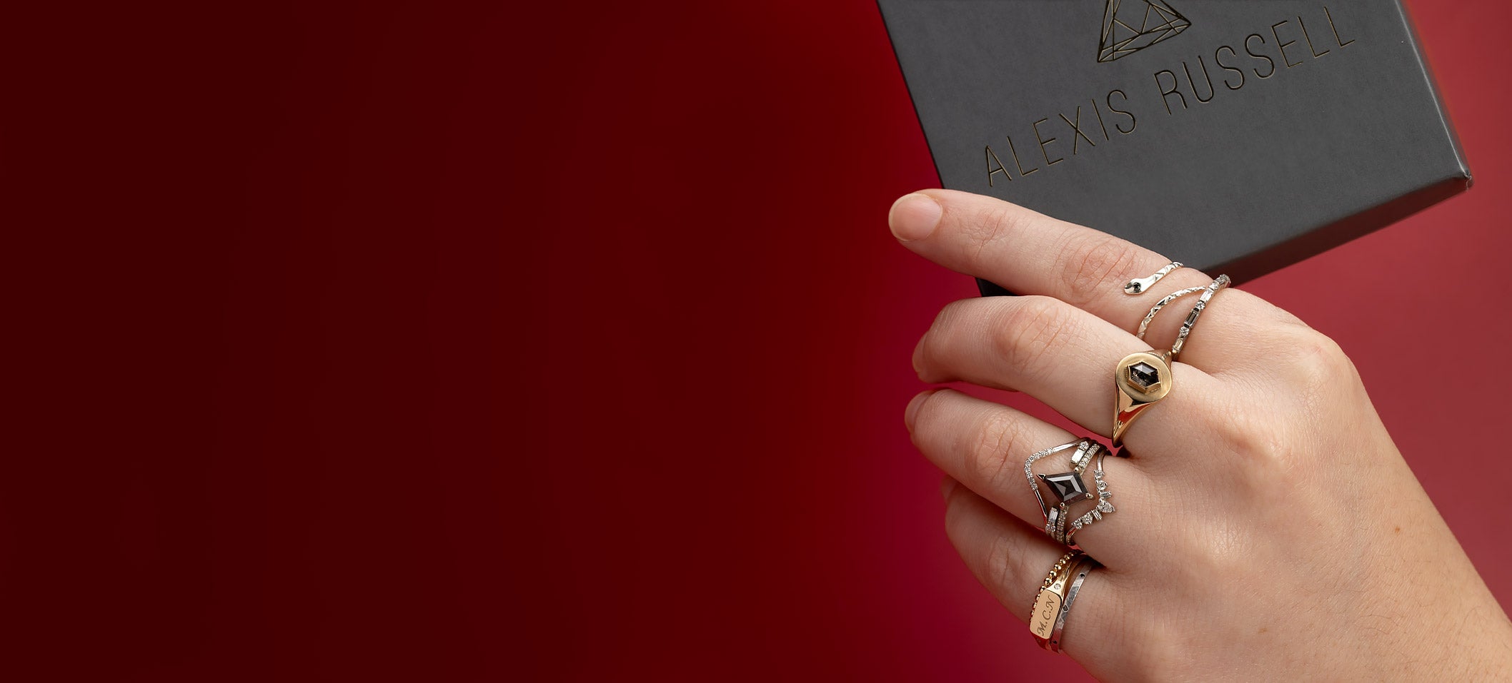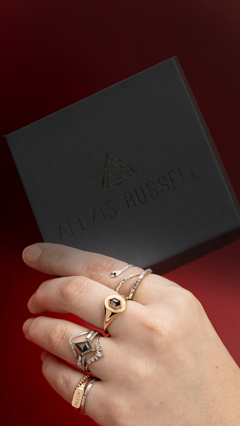 Create the perfect complement to both your engagement ring and your special day. Alexis Russell offers unique, handcrafted wedding rings designed to contour + stack perfectly with your engagement ring.