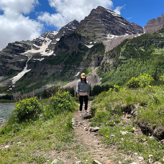 Alexis exploring the mountains, most likely looking for gems.